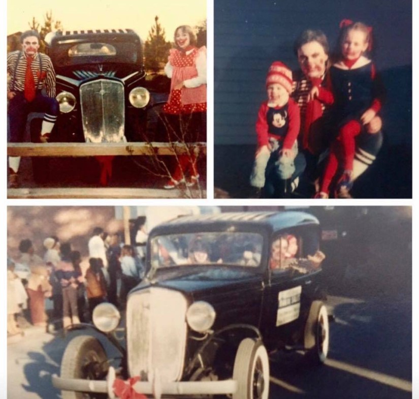 We were always in the community parades, and one year my family dressed as clowns and rode in a classic Ford Model A my dad restored.
