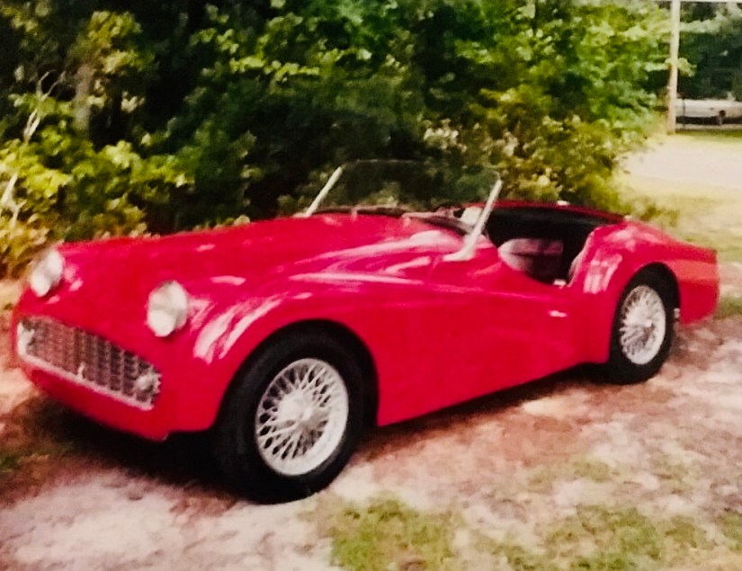 He also loves a classic car. Here he is below with his British Racing Green MG and a photo of the TR-3 he restored.