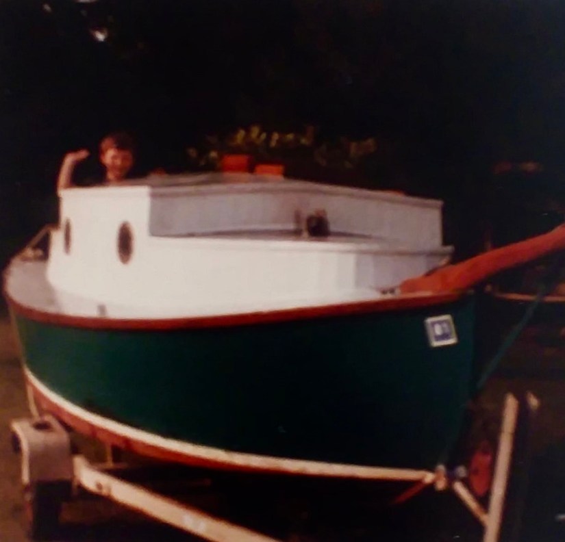 It was during one of those first college summers home Dad found a prehistoric fossilized tree stump, and a Megalodon Sharks Tooth while working inside the mine pit. He also built his very first wooden sailboat which would be the first of many boats he would build in his life.